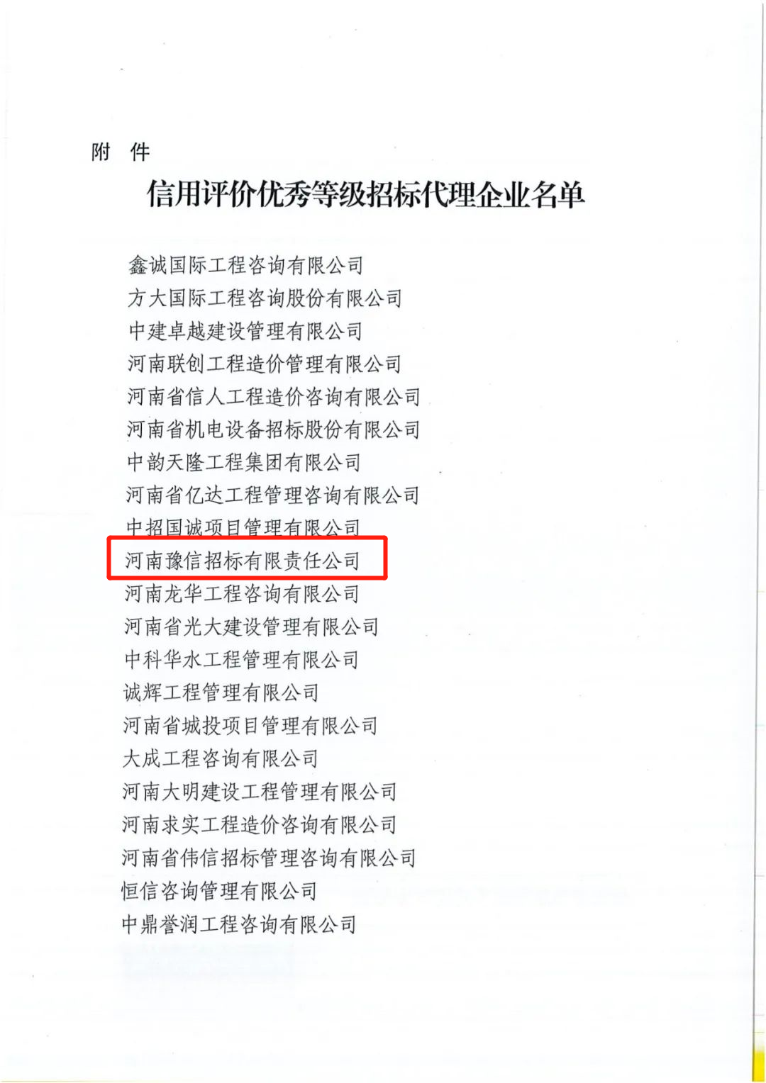 全省信用評價優(yōu)秀等級招標(biāo)代理