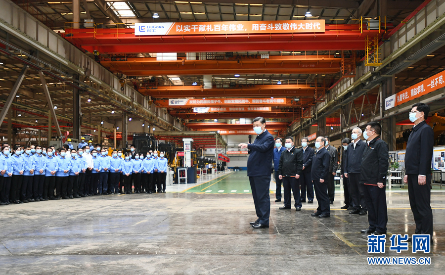 當(dāng)天下午,習(xí)近平來到柳州市考察調(diào)研。在廣西柳工集團(tuán)有限公司,習(xí)近平先后走進(jìn)公司展廳、研發(fā)實(shí)驗(yàn)中心、挖掘機(jī)裝配廠等,聽取企業(yè)發(fā)展情況介紹,察看主要產(chǎn)品展示,同企業(yè)職工和技術(shù)研發(fā)人員親切交談。習(xí)近平強(qiáng)調(diào),制造業(yè)高質(zhì)量發(fā)展是我國經(jīng)濟(jì)高質(zhì)量發(fā)展的重中之重,建設(shè)社會主義現(xiàn)代化強(qiáng)國、發(fā)展壯大實(shí)體經(jīng)濟(jì),都離不開制造業(yè),要在推動產(chǎn)業(yè)優(yōu)化升級上繼續(xù)下功夫。只有創(chuàng)新才能自強(qiáng)、才能爭先,要堅(jiān)定不移走自主創(chuàng)新道路,把創(chuàng)新發(fā)展主動權(quán)牢牢掌握在自己手中。要堅(jiān)持黨對國有企業(yè)的全面領(lǐng)導(dǎo),堅(jiān)持加強(qiáng)黨的領(lǐng)導(dǎo)和完善公司治理相統(tǒng)一,在深化企業(yè)改革中搞好黨的建設(shè),充分發(fā)揮黨組織在企業(yè)改革發(fā)展中的領(lǐng)導(dǎo)核心作用。