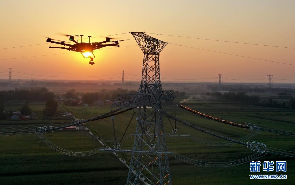 基于5G網(wǎng)絡(luò)傳輸條件下的無(wú)人機(jī)在青海—河南±800千伏特高壓直流輸電工程豫南換流變電站外巡檢(2020年8月27日拍攝,無(wú)人機(jī)照片)。新華社記者 李嘉南 攝