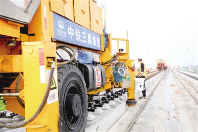 ? 7月16日18時(shí)左右,在衛(wèi)輝南站東側(cè)附近的鄭濟(jì)高鐵鋪軌現(xiàn)場(chǎng),隨著鋪軌列車(chē)將一條條500米長(zhǎng)軌放置到位,鄭濟(jì)高鐵軌道延伸至衛(wèi)輝南站站區(qū),這標(biāo)志著鄭濟(jì)高鐵鄭州至濮陽(yáng)段新建區(qū)段鋪軌工程量過(guò)半,離工程完工又近了一步。