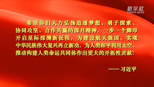 ?? 習近平總書記曾用“追逐夢想、勇于探索、協(xié)同攻堅、合作共贏”這16個字高度概括總結了“探月精神”,勉勵航天工作者們一步一個腳印開啟星際探測新征程,為建設航天強國、實現(xiàn)中華民族偉大復興再立新功。