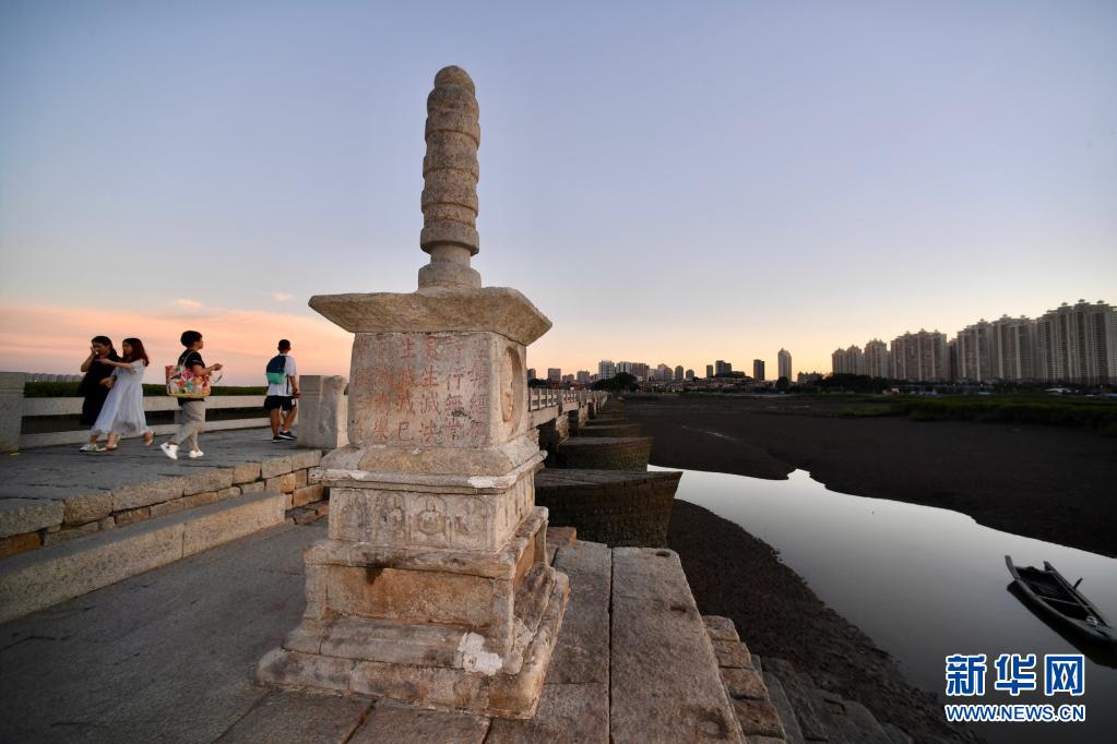 游人在傍晚時分游覽泉州洛陽橋(7月7日攝)。新華社記者 姜克紅 攝