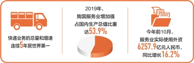 過去兩年,我國宣布了眾多金融業(yè)開放措施,以金融業(yè)為代表的服務(wù)業(yè)開放成為我國全面擴(kuò)大對外開放的“重頭戲”。“十三五”以來,我國服務(wù)業(yè)對外開放新舉措密集出臺,服務(wù)業(yè)開放步履鏗鏘。統(tǒng)計顯示,今年前10月,服務(wù)業(yè)實際使用外資6257.9億元,同比增長16.2%。