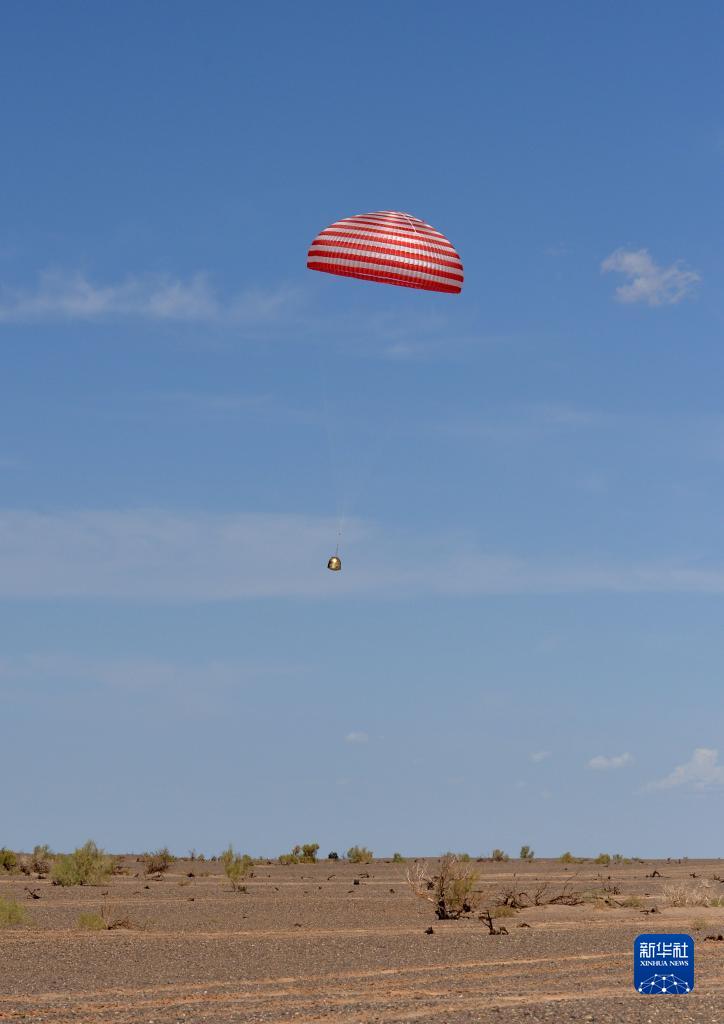13時(shí)34分,返回艙在預(yù)定區(qū)域著陸,落點(diǎn)近乎完美。