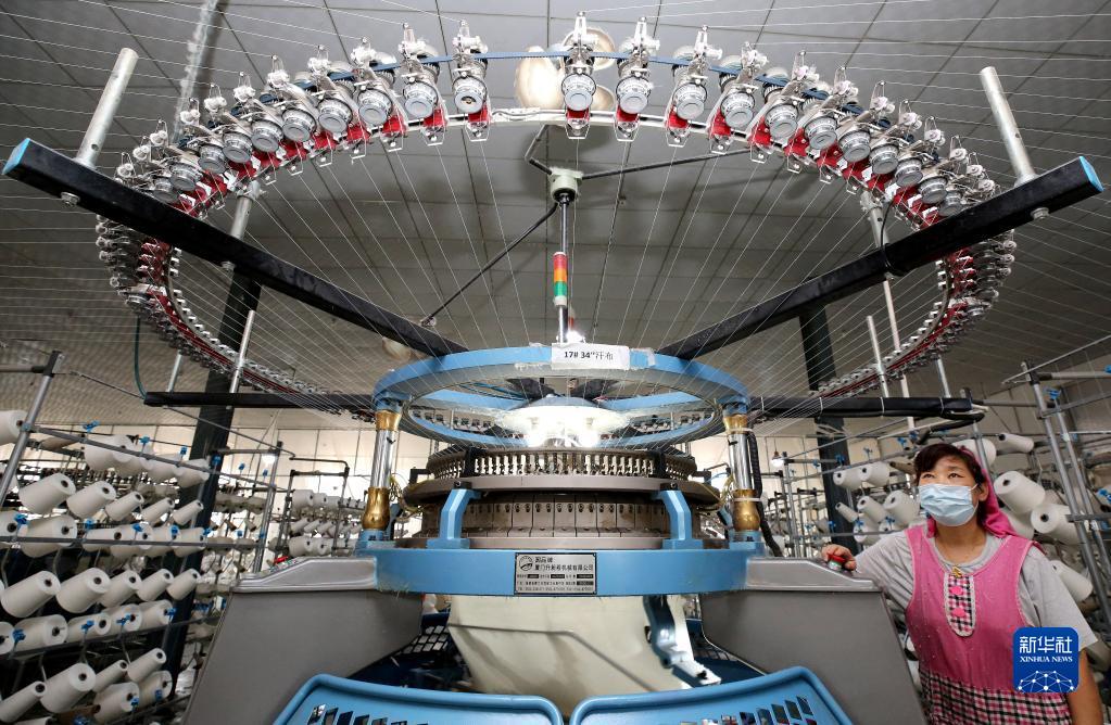 8月22日,在山東省棗莊市稅郭鎮(zhèn)的一家紡織企業(yè),工人在生產(chǎn)純棉布。稅郭鎮(zhèn)生產(chǎn)的紡織服裝產(chǎn)品出口到美國、德國、法國、日本、韓國等38個(gè)國家和地區(qū)。新華社發(fā)(孫中喆 攝)