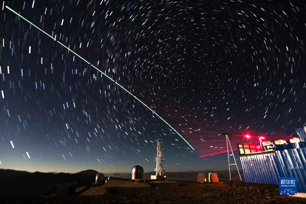 2016年12月9日,“墨子號”量子科學(xué)實(shí)驗(yàn)衛(wèi)星與阿里量子隱形傳態(tài)實(shí)驗(yàn)平臺建立天地鏈路(合成照片)。新華社記者 金立旺 攝