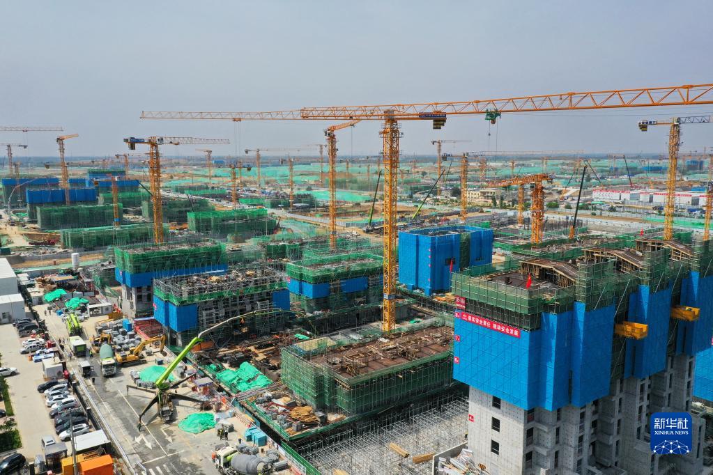 這是雄安新區(qū)容西片區(qū)建設現場(7月3日攝,無人機照片)。新華社記者 楊世堯 攝