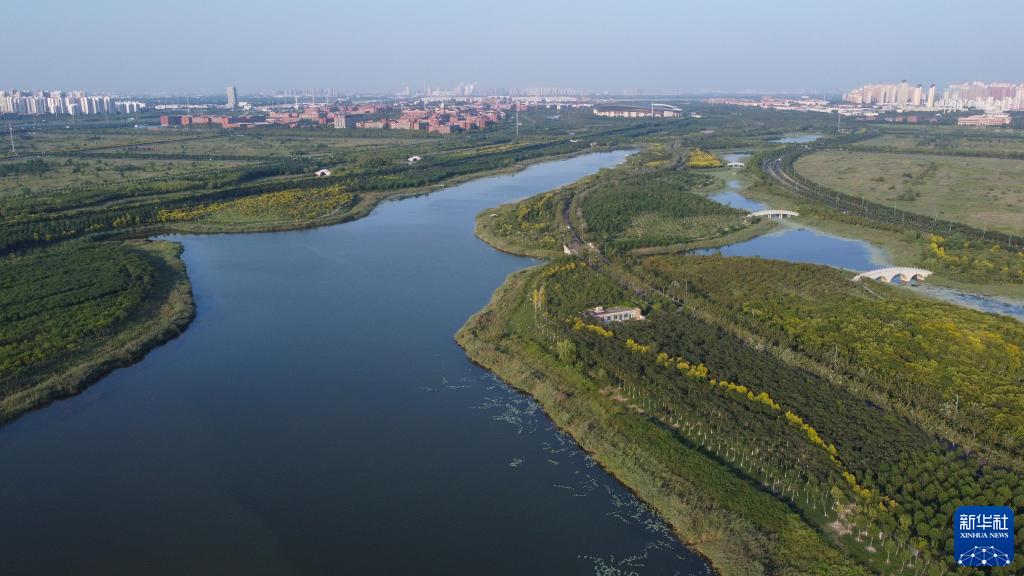 這是雄安新區(qū)悅容公園北苑內(nèi)的景色(9月1日攝,無人機照片)。新華社記者 牟宇 攝