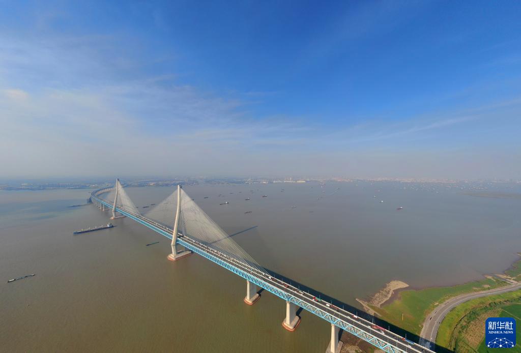 這是8月31日拍攝的滬蘇通長(zhǎng)江公鐵大橋(無(wú)人機(jī)照片)。新華社發(fā)(許叢軍 攝)