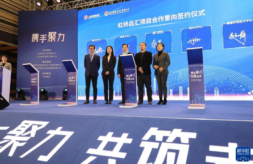 2020年12月30日,虹橋進(jìn)口商品展示交易中心長(zhǎng)三角城市分中心授牌儀式在上海虹橋進(jìn)口商品展示交易中心舉行,來(lái)自長(zhǎng)三角城市分中心的代表在儀式上簽署合作意向書。新華社記者 方喆 攝