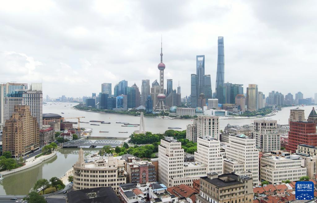 這是8月12日拍攝的上海黃浦江外灘區(qū)段兩岸樓群(無(wú)人機(jī)照片)。新華社記者 方喆 攝