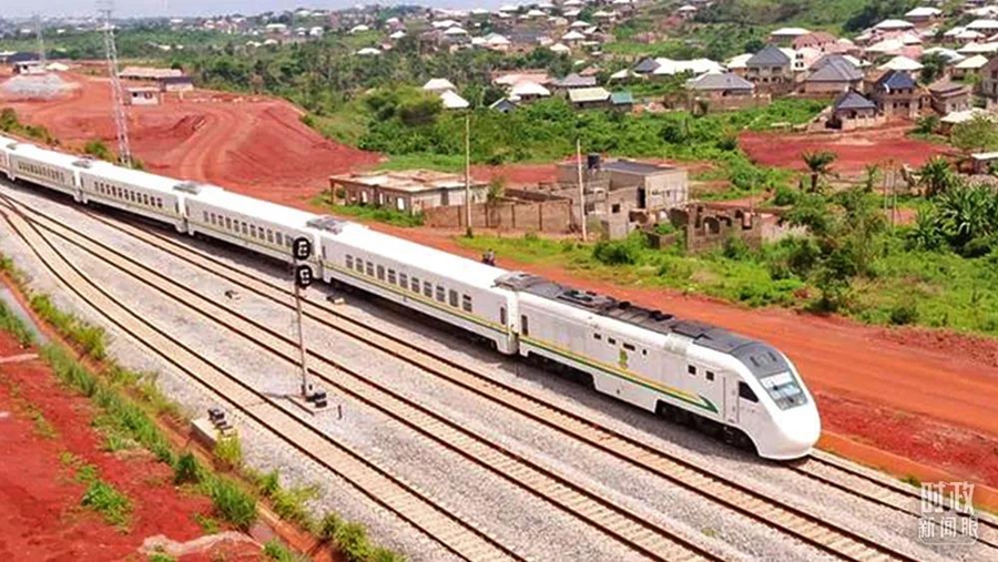 △2021年6月,由中企承建的尼日利亞拉伊鐵路正式通車運營。這是列車穿過當?shù)鼐用裆鐓^(qū)。(資料圖)