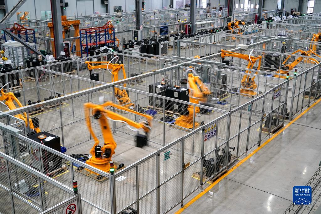 7月1日,在位于江蘇省南京市江寧區(qū)的南京埃斯頓自動(dòng)化股份有限公司工業(yè)機(jī)器人生產(chǎn)車間,工業(yè)機(jī)器人在進(jìn)行跑合測(cè)試。新華社記者 李博 攝