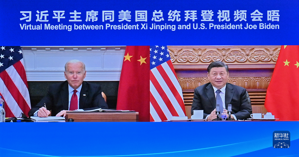 這是2021年11月16日上午,國家主席習(xí)近平在北京同美國總統(tǒng)拜登舉行視頻會晤。新華社記者 岳月偉 攝