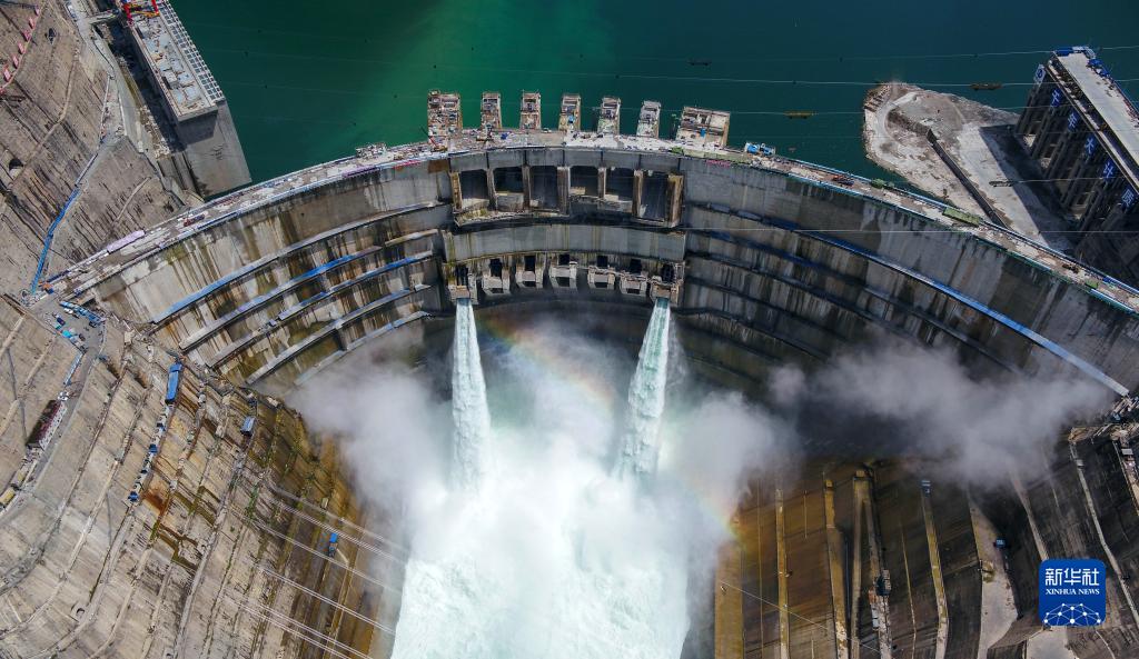 這是2021年6月10日拍攝的金沙江白鶴灘水電站。白鶴灘水電站是實施“西電東送”的國家重大工程,是當(dāng)今世界在建規(guī)模最大、技術(shù)難度最高的水電工程(無人機(jī)照片)。新華社記者 胥冰潔 攝