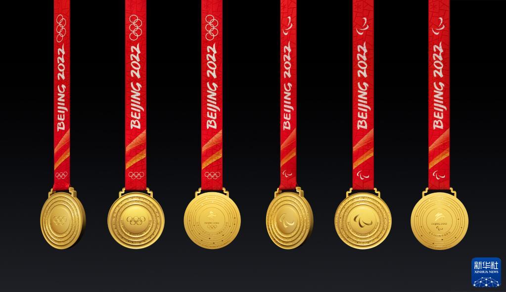 這是北京冬奧會(huì)(左)與冬殘奧會(huì)金牌。2021年10月26日,2022年北京冬奧會(huì)和冬殘奧會(huì)獎(jiǎng)牌在北京發(fā)布。新華社發(fā)(北京冬奧組委供圖)