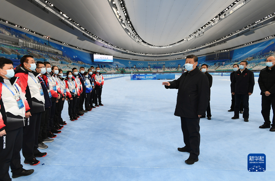 1月4日,中共中央總書(shū)記、國(guó)家主席、中央軍委主席習(xí)近平在北京考察2022年冬奧會(huì)、冬殘奧會(huì)籌辦備賽工作。這是4日上午,習(xí)近平在國(guó)家速滑館考察。新華社記者 謝環(huán)馳 攝