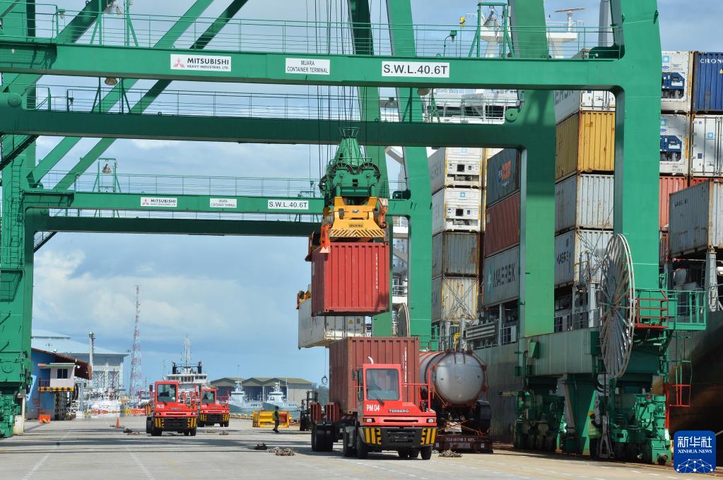這是2022年1月1日拍攝的正在進(jìn)行集裝箱裝卸作業(yè)的文萊摩拉港碼頭。文萊摩拉港由中國(guó)和文萊合資企業(yè)——摩拉港有限公司運(yùn)營(yíng)。新華社發(fā)(杰弗里·黃攝)