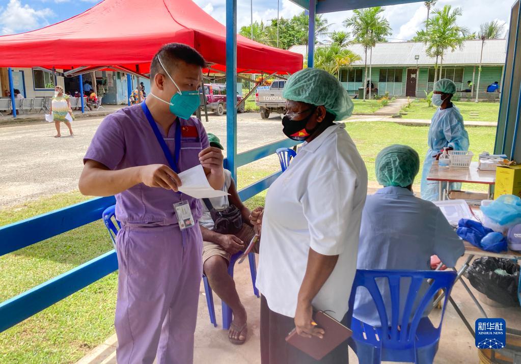 2021年8月25日,在巴布亞新幾內(nèi)亞新愛爾蘭省卡維恩總醫(yī)院,中國援巴新醫(yī)療隊隊員向當(dāng)?shù)蒯t(yī)護(hù)人員介紹疫苗接種注意事項。新華社發(fā)(中國援巴新醫(yī)療隊供圖) 2021年9月6日,位于埃及吉薩的埃及生物制品與疫苗公司使用中國科興疫苗原液生產(chǎn)新冠疫苗。埃及是非洲大陸第一個同中國合作生產(chǎn)新冠疫苗的國家。新華社發(fā)(艾哈邁德·戈馬 攝)