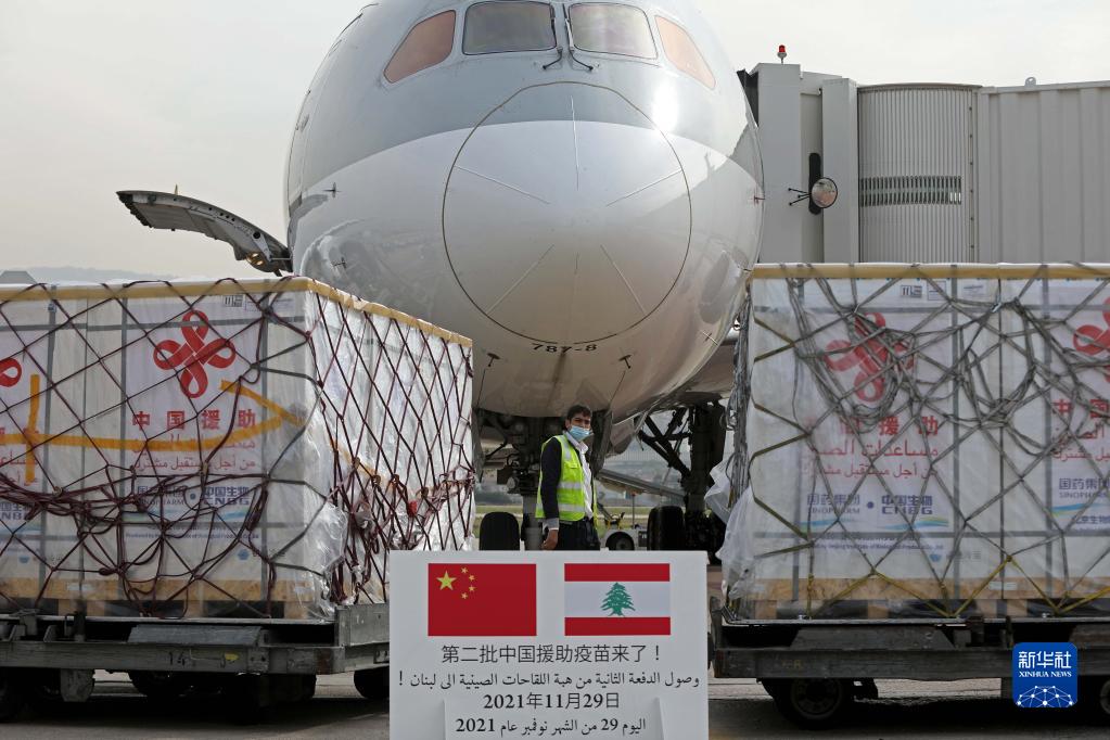 2021年11月29日,中國援助黎巴嫩第二批新冠疫苗運抵貝魯特拉菲克·哈里里國際機(jī)場。新華社發(fā)(比拉爾·賈維希 攝)