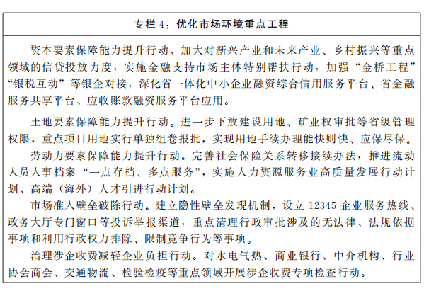 創(chuàng)新服務企業(yè)模式。建立黨建引領(lǐng)企業(yè)幫扶工作機制,持續(xù)推行“萬人助萬企”領(lǐng)導包聯(lián)、專班服務、督促督辦、考核獎懲“四個機制”,開展“萬人助萬企、深化一聯(lián)三幫”活動,落實首席服務官(員)制度,開展產(chǎn)融、產(chǎn)銷、產(chǎn)學研、產(chǎn)業(yè)與人才等精準“四項對接”活動,市場化、社會化解決企業(yè)資金、技術(shù)、市場和用工人才等方面的共性問題。全面推行“有訴即辦”服務模式,聚焦“萬人助萬企”活動中發(fā)現(xiàn)的問題、民營企業(yè)日常訴求、營商環(huán)境投訴舉報、外資企業(yè)訴求等,完善提升12345政務服務便民熱線、政府網(wǎng)站、民營企業(yè)訴求響應智慧平臺,加強大數(shù)據(jù)動態(tài)監(jiān)測,實現(xiàn)有訴即接、有訴即應、有訴即辦、有訴必辦。聚焦頭部企業(yè)、獨角獸企業(yè)、小微企業(yè)等不同類型企業(yè),完善差異化服務企業(yè)政策,制定“四新”(新技術(shù)、新產(chǎn)業(yè)、新業(yè)態(tài)、新模式)經(jīng)濟政策,實施精準服務,提升服務層次和水平。加大惠企政策宣傳力度,推行惠企政策“免申即享”,建立完善企業(yè)所得稅優(yōu)惠政策“提醒—輔導—預警”工作制度。發(fā)揮行業(yè)協(xié)會、產(chǎn)業(yè)聯(lián)盟等作用,建立完善產(chǎn)業(yè)鏈鏈長和產(chǎn)業(yè)聯(lián)盟會長“雙長制”。推廣企業(yè)服務日、企業(yè)家懇談日制度,完善營商環(huán)境特邀監(jiān)督員制度。建立健全首席信用服務官制度,打造政企溝通“零距離”模式,選派關(guān)聯(lián)性強、業(yè)務對口的干部,“一對一”為企業(yè)提供精準服務。