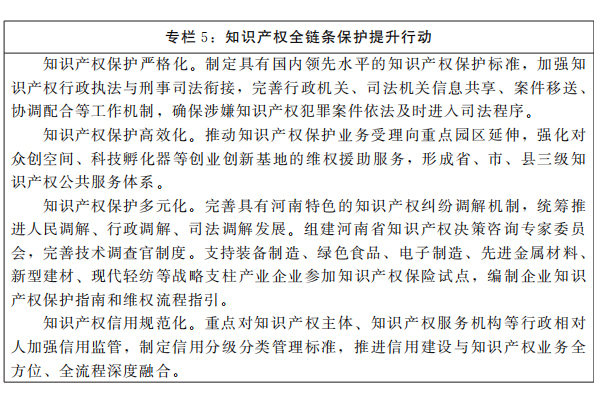 強化知識產(chǎn)權(quán)信用建設。完善知識產(chǎn)權(quán)保護信用管理制度,加強知識產(chǎn)權(quán)領(lǐng)域信用信息歸集共享、信用信息公示、信用分級分類監(jiān)管、信用獎懲和信用修復等環(huán)節(jié)的監(jiān)督管理,提升全社會知識產(chǎn)權(quán)保護意識。加強對重點行業(yè)、領(lǐng)域和地方的知識產(chǎn)權(quán)保護,維護權(quán)利人及社會公眾的合法權(quán)益。規(guī)范知識產(chǎn)權(quán)領(lǐng)域信用信息歸集,依法依規(guī)將商標搶注和惡意注冊、非正常專利申請等失信行為信息納入信用記錄。發(fā)揮國家技術(shù)轉(zhuǎn)移鄭州中心作用,積極申建國家級知識產(chǎn)權(quán)領(lǐng)域以信用為基礎(chǔ)的分級分類監(jiān)管試點,開展省級試點創(chuàng)建,為提高科技成果轉(zhuǎn)移轉(zhuǎn)化成效提供良好信用環(huán)境保障。