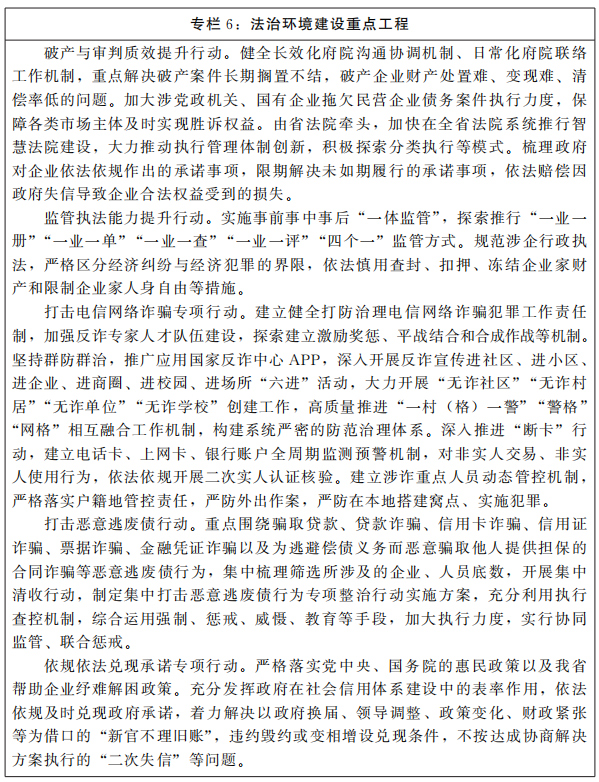 “十三五”時期,全省上下錨定目標、對標先進、銳意改革、強力推進,營商環(huán)境在全國位次穩(wěn)步提升,社會信用體系各項指標明顯優(yōu)化,市場主體活力有力激發(fā)、滿意度持續(xù)提升,為實現(xiàn)“兩個確?!钡於藞詫嵒A(chǔ)。