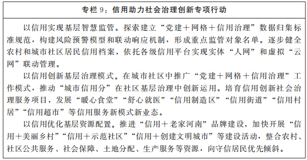 全面提升社會信用法治化水平。貫徹落實《河南省社會信用條例》,嚴格依法依規(guī)規(guī)范社會信用信息采集歸集和披露、信用主體權(quán)益保護、信用服務行業(yè)發(fā)展等。建立完善信用承諾、信用評價、分級分類監(jiān)管、信用獎懲、信用修復等關(guān)鍵環(huán)節(jié)的配套制度,形成“1+N”信用法規(guī)制度體系,規(guī)范操作細則。推動行業(yè)部門在法規(guī)制定或修訂中寫入信用條款,完善各行業(yè)、領(lǐng)域的信用配套制度體系。按照“誰制定、誰整改”的原則,及時修訂完善或清理廢止不符合社會信用體系法治化、規(guī)范化建設要求的相關(guān)法規(guī)政策,確保社會信用體系建設法規(guī)制度嚴謹統(tǒng)一、規(guī)范有序。