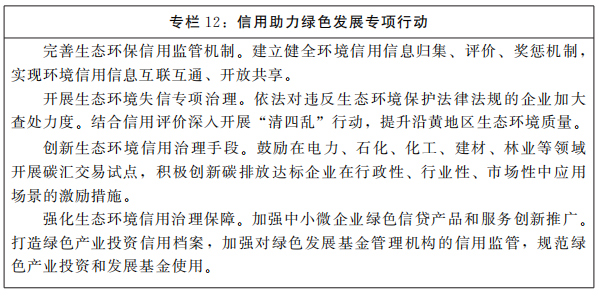 加強生態(tài)環(huán)境領(lǐng)域信用建設,開展生態(tài)環(huán)境失信專項治理,創(chuàng)新生態(tài)環(huán)境失信治理措施。強化沿黃生態(tài)、淮河生態(tài)、大別山等生態(tài)環(huán)境圈信用治理保障,結(jié)合公共信用評價和行業(yè)信用評價,制定沿黃、淮河、大別山等地區(qū)產(chǎn)業(yè)準入負面清單,推動高耗水、高污染、高耗能產(chǎn)業(yè)布局優(yōu)化和結(jié)構(gòu)調(diào)整。