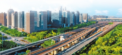 高鐵列車從鄭州東站附近縱橫交錯的高鐵線路中穿過。本報(bào)資料圖片