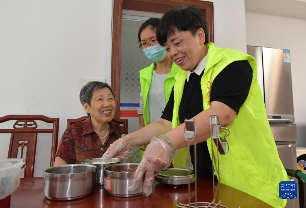 在江西省南昌市東湖區(qū)彭家橋街道文教路北社區(qū),“幸福食堂”的義工在給社區(qū)內(nèi)出行困難的老人提供送餐服務(wù)(2020年7月29日攝)。從2018年12月起,南昌市東湖區(qū)彭家橋街道在社區(qū)打造以黨建引領(lǐng)、社區(qū)主導(dǎo)、愛心企業(yè)贊助的“幸福食堂”,專門為社區(qū)獨居、孤寡及生活困難的老年人提供營養(yǎng)餐,以此進一步完善社區(qū)居家互助養(yǎng)老服務(wù)。新華社記者 彭昭之 攝