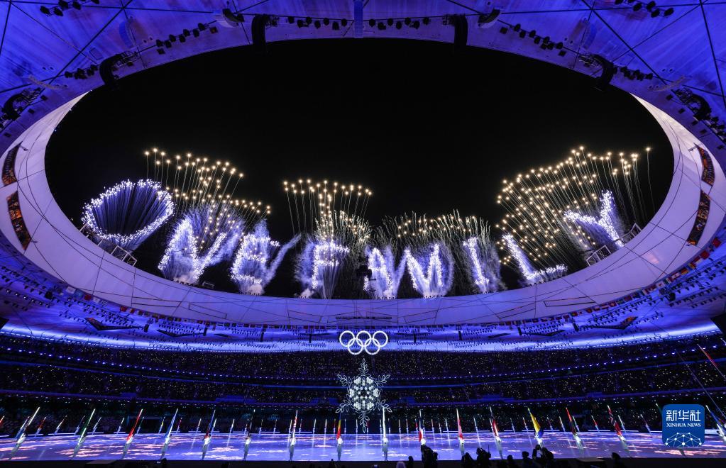 2022年2月20日晚的國(guó)家體育場(chǎng)流光溢彩,充滿依依惜別的濃濃情誼?!疤煜乱患摇弊謽拥难婊鹪凇傍B巢”上空粲然綻放,舉世矚目的北京冬奧會(huì)圓滿落下帷幕。