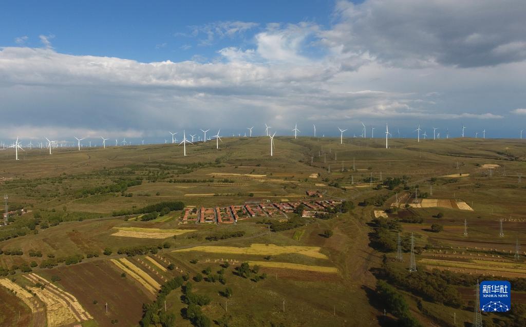 這是河北省張家口市張北縣大河鄉(xiāng)一處風(fēng)電場(2020年9月15日攝,無人機(jī)照片)。新華社記者楊世堯攝