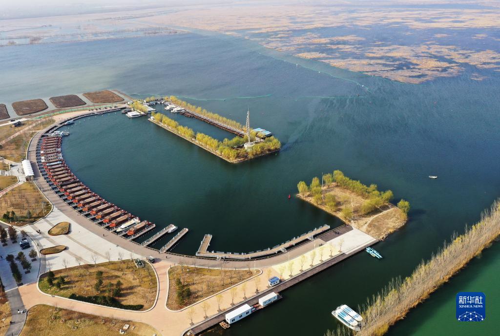 這是3月28日拍攝的雄安新區(qū)白洋淀旅游碼頭(無(wú)人機(jī)照片)。新華社記者 朱旭東 攝