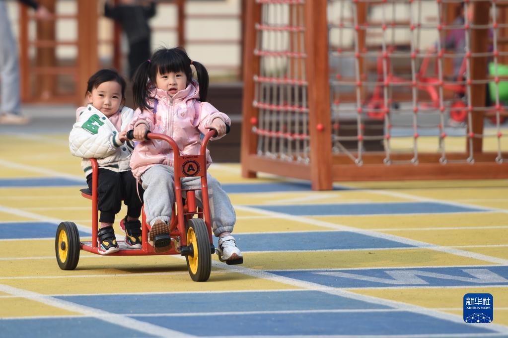 小朋友在雄安容和雙文幼兒園玩耍(3月23日攝)。新華社記者 駱學(xué)峰 攝