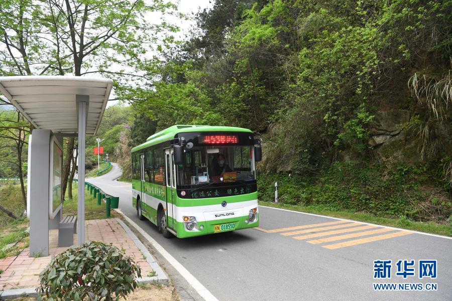 一輛公交車(chē)行駛在大灣村的公路上(2020年4月17日攝)。新華社記者劉軍喜攝