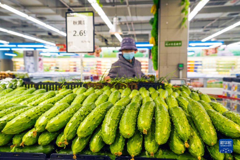 消費者在河北唐山遵化市一家超市選購蔬菜(4月11日攝)。新華社發(fā)(劉滿倉攝)