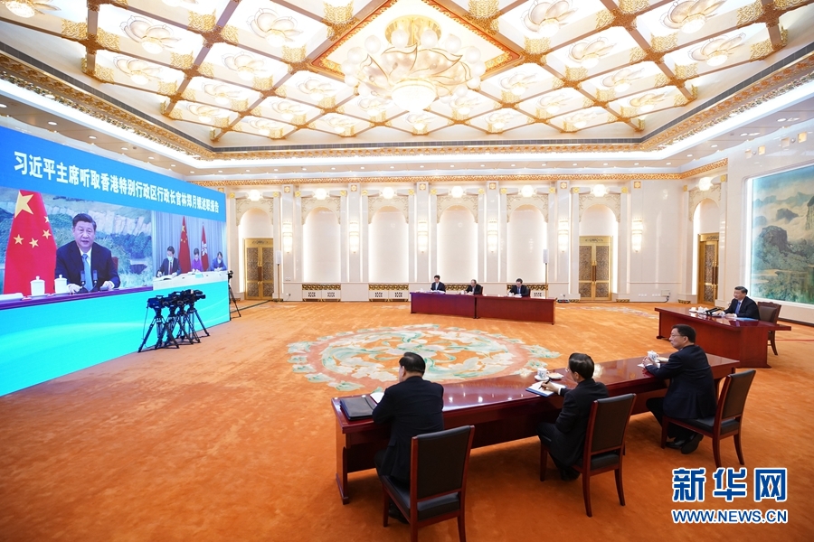 1月27日,國家主席習(xí)近平在北京以視頻連線方式聽取了香港特別行政區(qū)行政長官林鄭月娥2020年度的述職報告。新華社記者 鞠鵬 攝