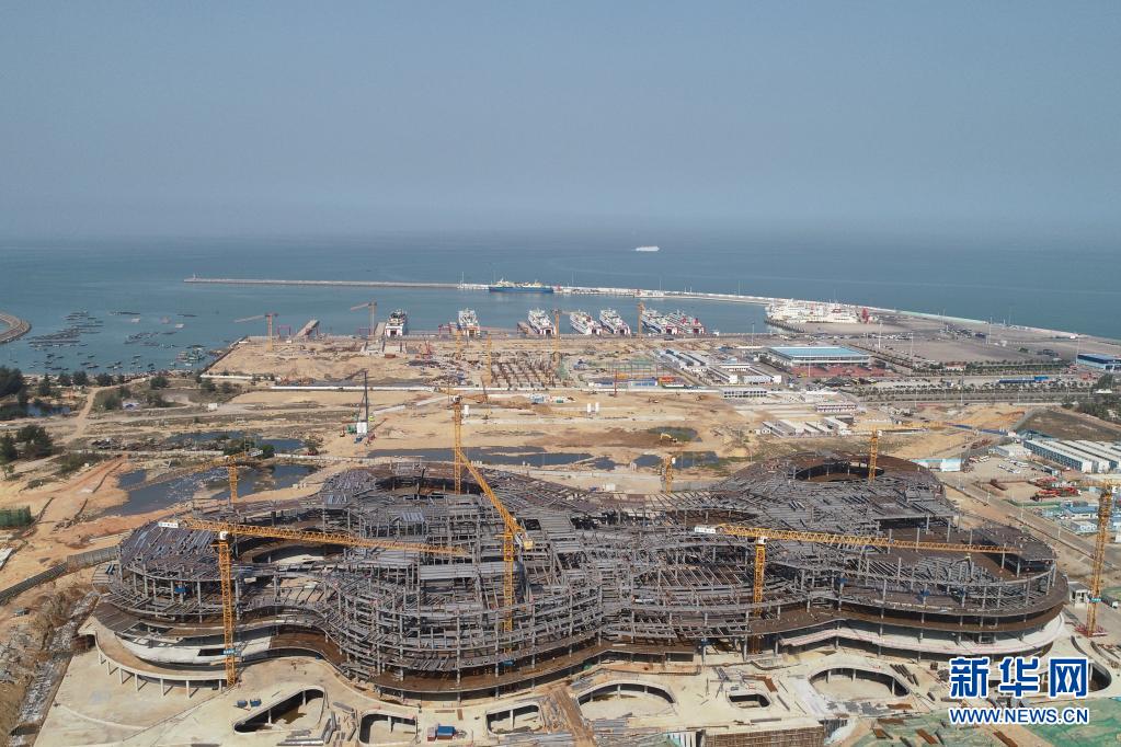 這是2月20日拍攝的海口國(guó)際免稅城項(xiàng)目施工現(xiàn)場(chǎng)(無(wú)人機(jī)照片)。新華社記者 張麗蕓 攝
