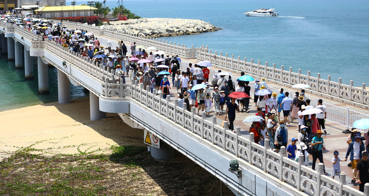 5月1日,游客在海南省三亞市南山文化旅游區(qū)游覽。新華社發(fā)(陳文武 攝)