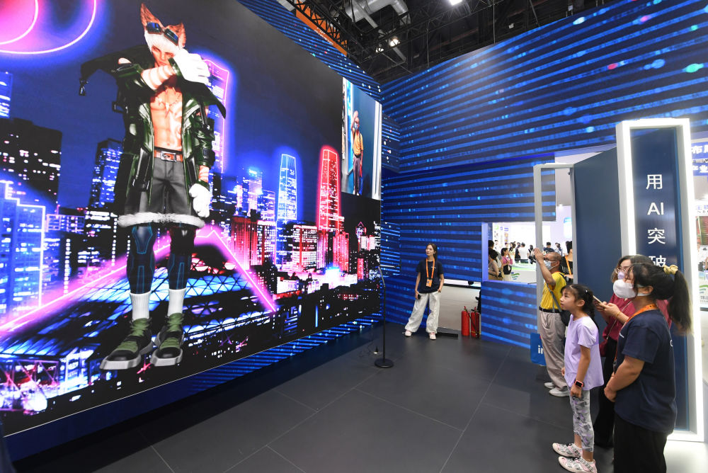 9月3日,一名參觀者在首鋼園中國(guó)移動(dòng)展臺(tái)體驗(yàn)基于AR/VR特效的敦煌導(dǎo)覽,沉浸式感受敦煌壁畫(huà)的魅力。新華社記者 李鑫 攝