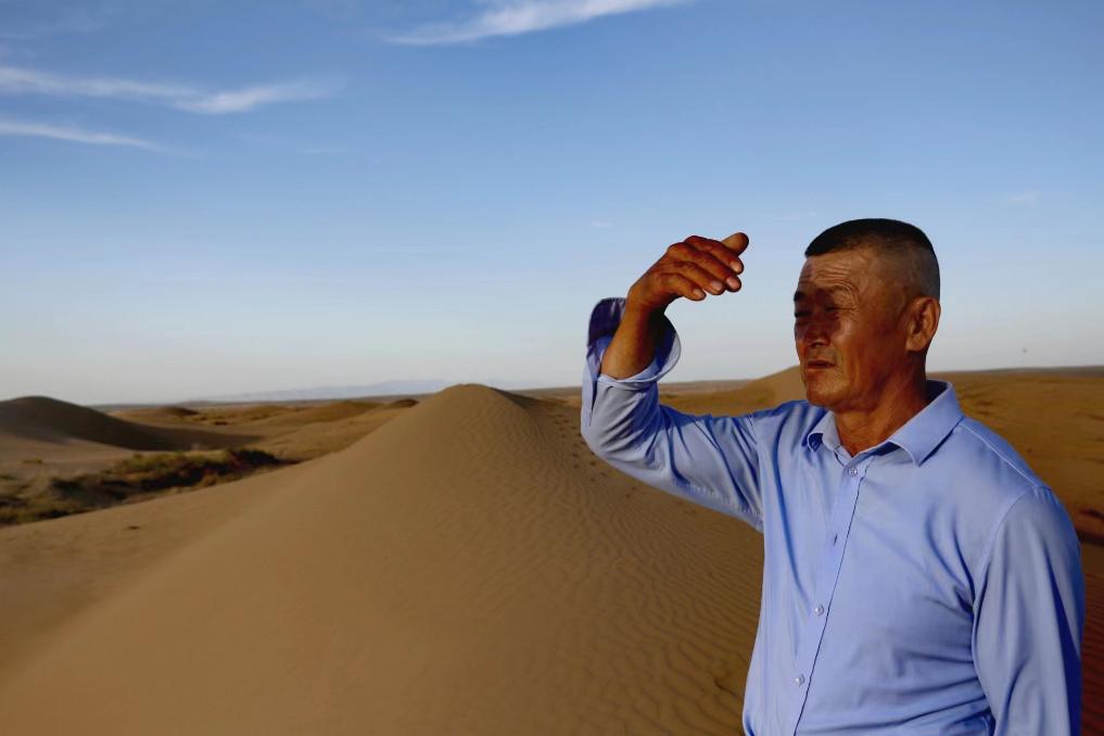 烏日根達來還是個精壯小伙時,在妻子支持下,賣掉家里的山羊換回2萬元,正式開始植樹治沙。