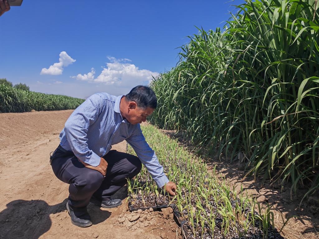 “巨菌草蛋白含量高,是菌菇栽培、牛羊飼養(yǎng)的好原料,而且耐鹽堿、根系發(fā)達、出草量大、‘吃鹽’能力很強。種植一百多天后,土地含鹽量下降了約70%?!毖芯恐行母呒夀r(nóng)藝師周興德欣喜地說。