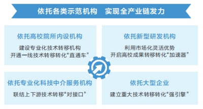 ??——依托新型研發(fā)機構,利用市場化靈活優(yōu)勢,開啟高校成果轉移轉化“加速器”。例如,鄭州輕大產(chǎn)業(yè)技術研究院有限公司圍繞新材料新能源、智能制造與大數(shù)據(jù)、環(huán)境污染治理與生態(tài)修復等三大特色發(fā)展方向,通過實施“篩選、培育、撮合、轉化”的成果轉化機制,加速推進技術創(chuàng)新、成果轉化與產(chǎn)業(yè)化,成果顯著。