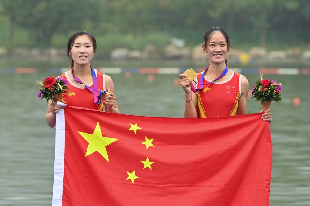 張新首先肯定了中國賽艇隊當(dāng)天奪得6個小項金牌,并且在女子輕量級雙人雙槳項目中收獲亞運會首金。他說:“中國代表團取得了‘開門紅’。首金有利于鼓舞全團士氣,對還沒有開賽的運動隊有激勵作用?!?/span>