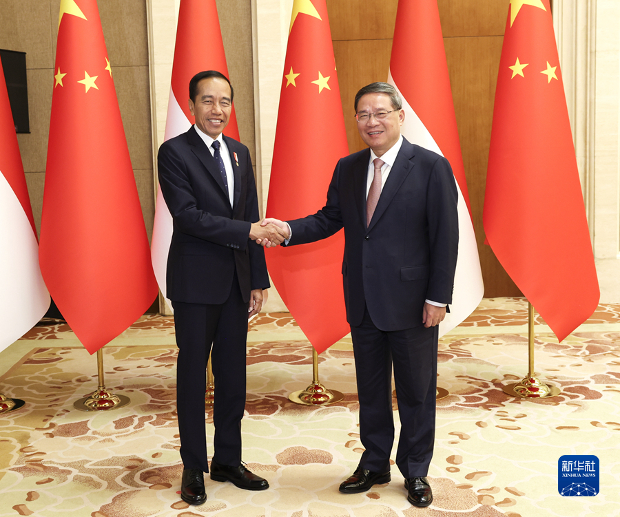 10月17日上午,國務(wù)院總理李強(qiáng)在北京會(huì)見來華出席第三屆“一帶一路”國際合作高峰論壇并進(jìn)行國事訪問的印度尼西亞總統(tǒng)佐科。新華社記者 龐興雷 攝