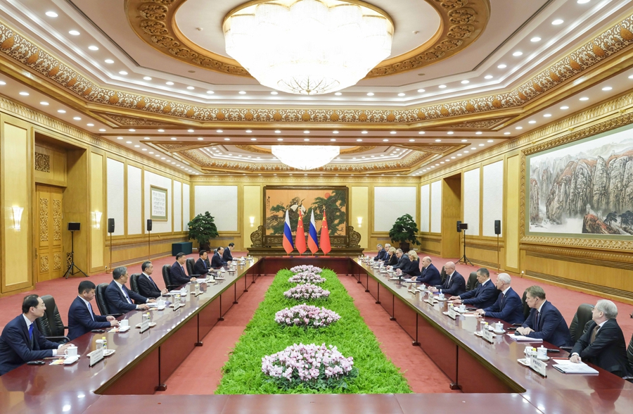 習(xí)近平強(qiáng)調(diào),中國(guó)經(jīng)濟(jì)韌性強(qiáng)、潛力大、回旋余地廣、長(zhǎng)期向好的基本面沒(méi)有改變。中國(guó)堅(jiān)定推動(dòng)高質(zhì)量發(fā)展,推進(jìn)高水平對(duì)外開(kāi)放,將為包括俄羅斯在內(nèi)的各國(guó)發(fā)展提供新機(jī)遇。雙方要充分發(fā)揮政治互信、經(jīng)濟(jì)互補(bǔ)、設(shè)施互聯(lián)、民心互通優(yōu)勢(shì),不斷豐富合作內(nèi)涵,深化經(jīng)貿(mào)、能源、互聯(lián)互通等領(lǐng)域合作,共同維護(hù)產(chǎn)業(yè)鏈供應(yīng)鏈安全穩(wěn)定。雙方要辦好明后兩年中俄文化年,多設(shè)計(jì)、多開(kāi)展豐富多彩的人文交流活動(dòng),夯實(shí)兩國(guó)世代友好的社會(huì)和民意基礎(chǔ)。