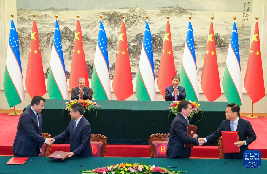 ??會(huì)談后,兩國(guó)元首簽署并發(fā)表了《中華人民共和國(guó)和烏茲別克斯坦共和國(guó)關(guān)于新時(shí)代全天候全面戰(zhàn)略伙伴關(guān)系的聯(lián)合聲明》,并共同見證簽署共建“一帶一路”、全球發(fā)展倡議、經(jīng)濟(jì)技術(shù)合作、互聯(lián)互通、環(huán)境保護(hù)、新能源、科技、人文、農(nóng)產(chǎn)品準(zhǔn)入、地方等領(lǐng)域一系列合作文件。