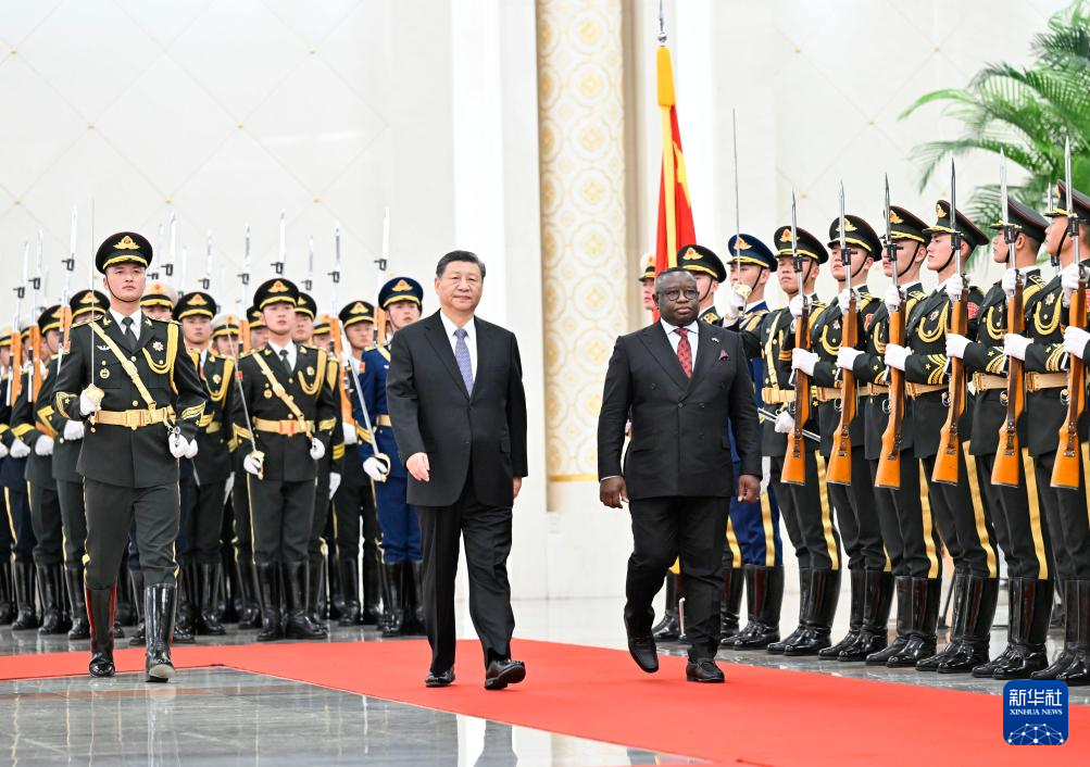??會(huì)談前,習(xí)近平和夫人彭麗媛在人民大會(huì)堂北大廳為比奧和夫人法蒂瑪舉行歡迎儀式。