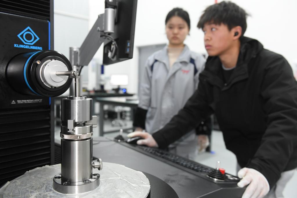 ??浙江豐立智能科技股份有限公司技術(shù)人員在實(shí)驗室測量齒輪精度。